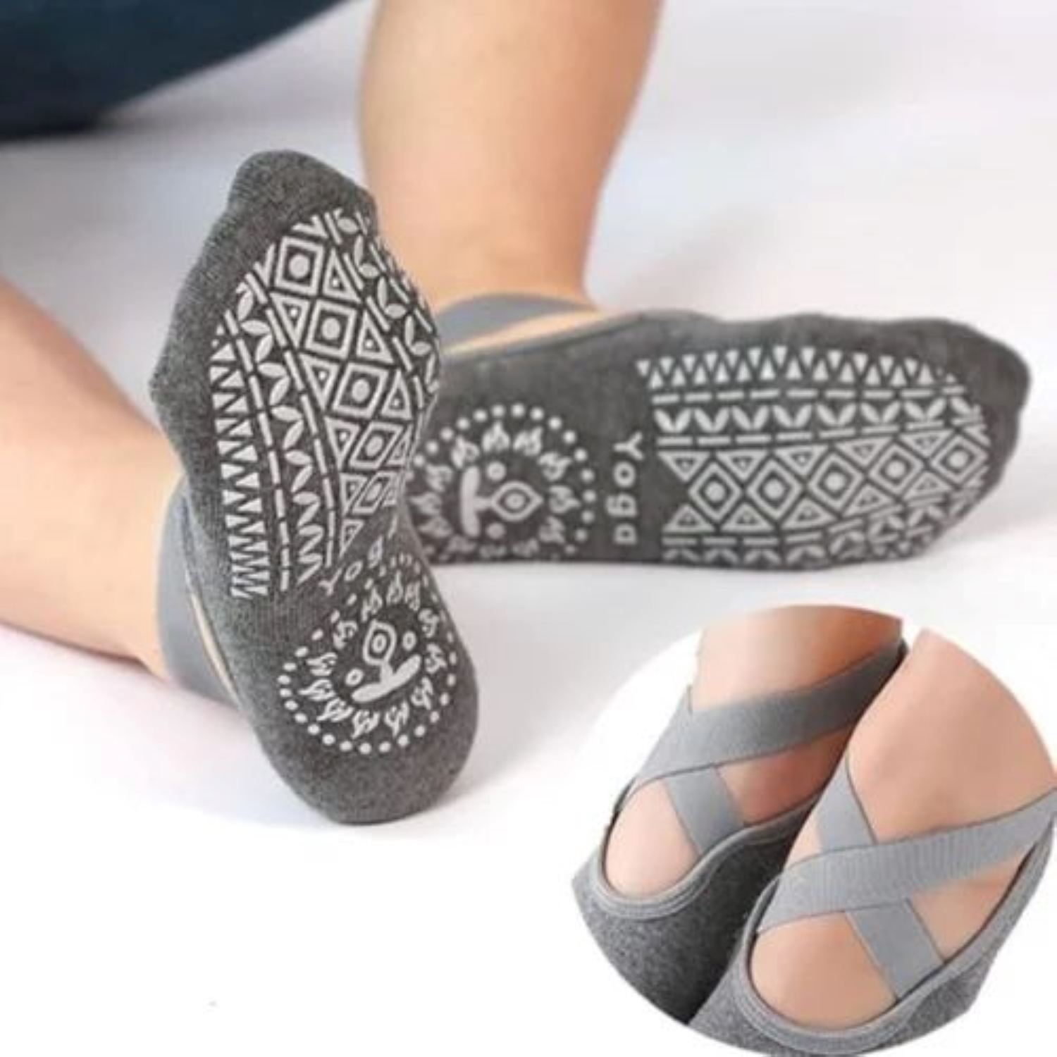 کفی ضد لغزش : وجود نقاط سیلیکونی در کف جوراب باعث می شود هنگام انجام حرکات روی تشک یا سطح صاف، از سر خوردن جلوگیری شود.